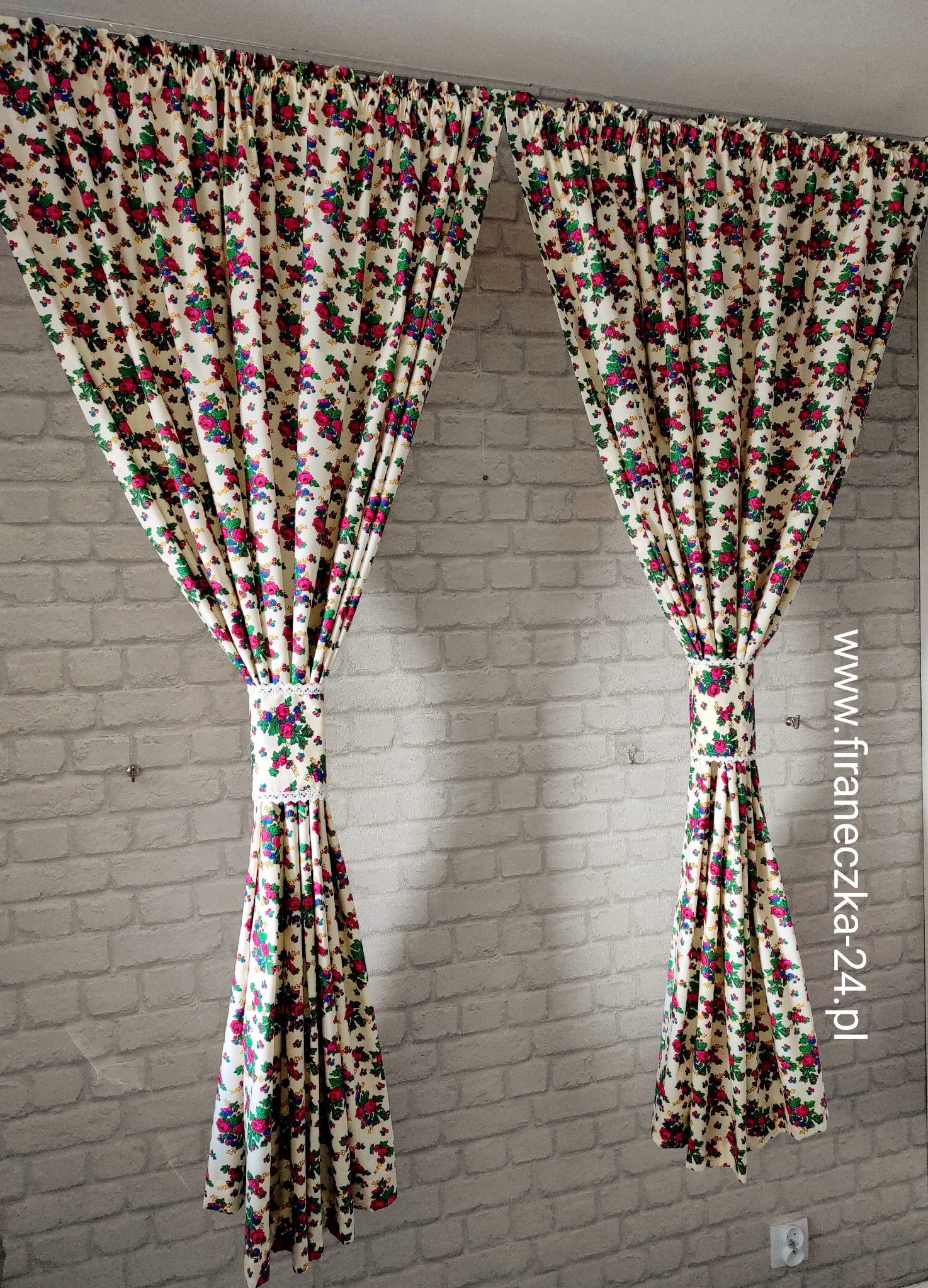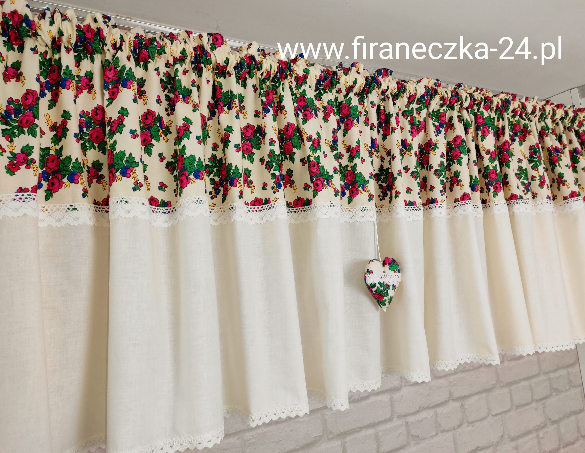 Komplet zasłonki i lambrekin folk góralski