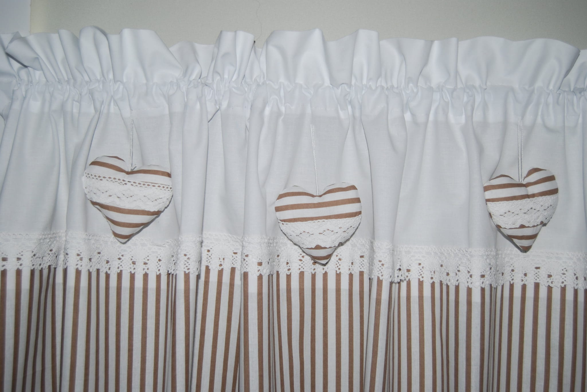 Zazdrostka uszyta z polskiej bawełny z dodatkiem bawełnianej koronki. Na zazdrostkę przypadają 1 zawieszka z serduszkiem. Pięknie prezentuje się w romantycznym i nowoczesnym wnętrzu.