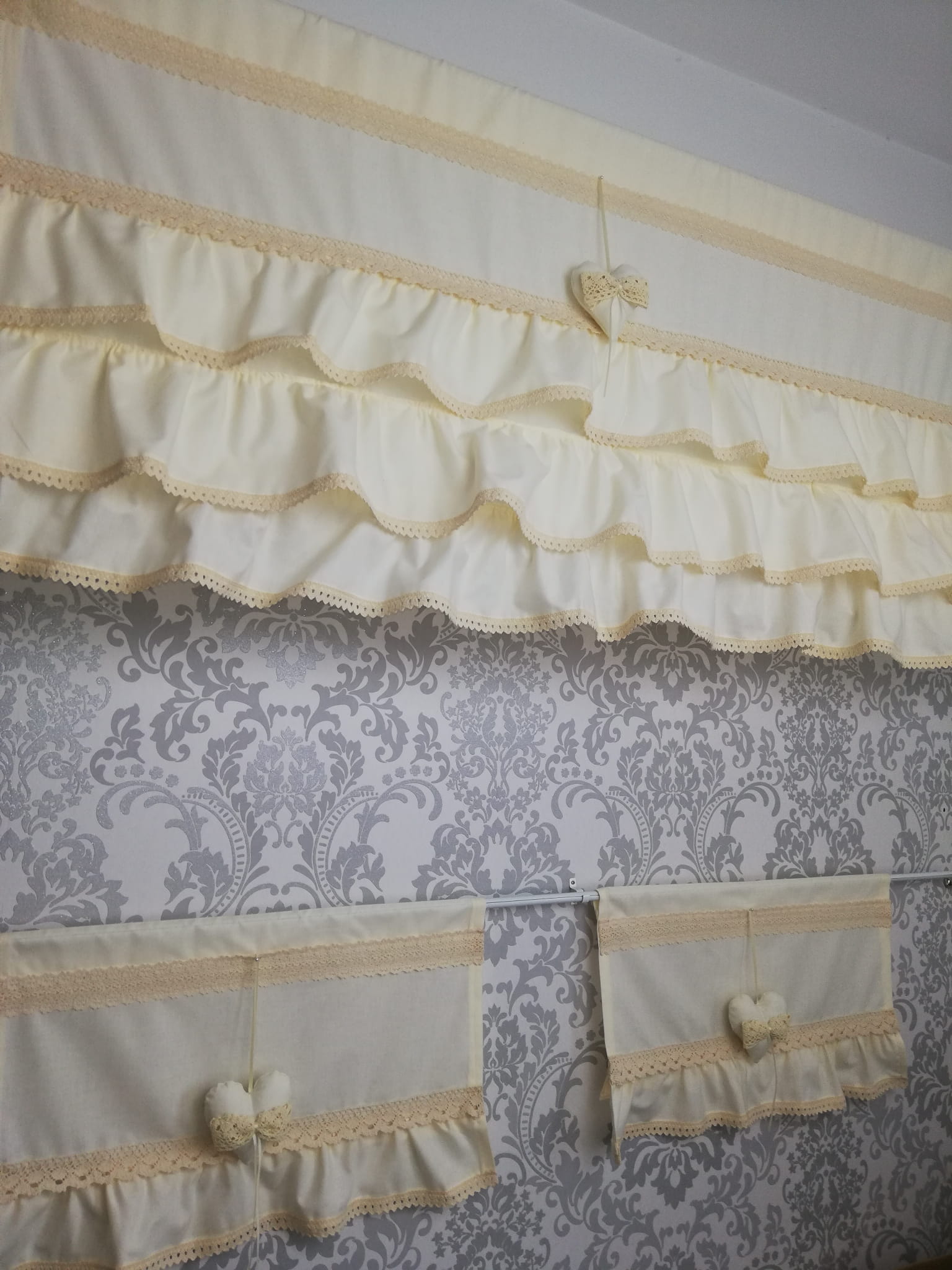 Ekran panel ecru z falbankami i koronka 100% bawełna
