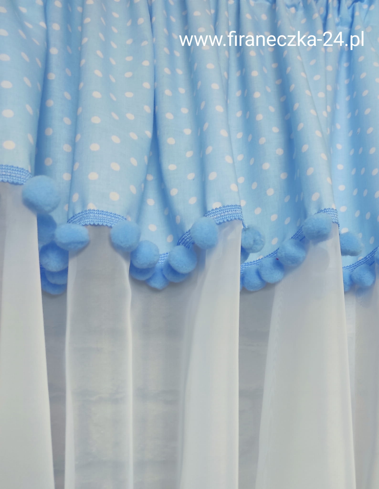 Firanki dziecięce z bawełny i woalu z kokardkami i pomponami Gotowy komplet! na karnisz szer. 120-150cm długość 200cm