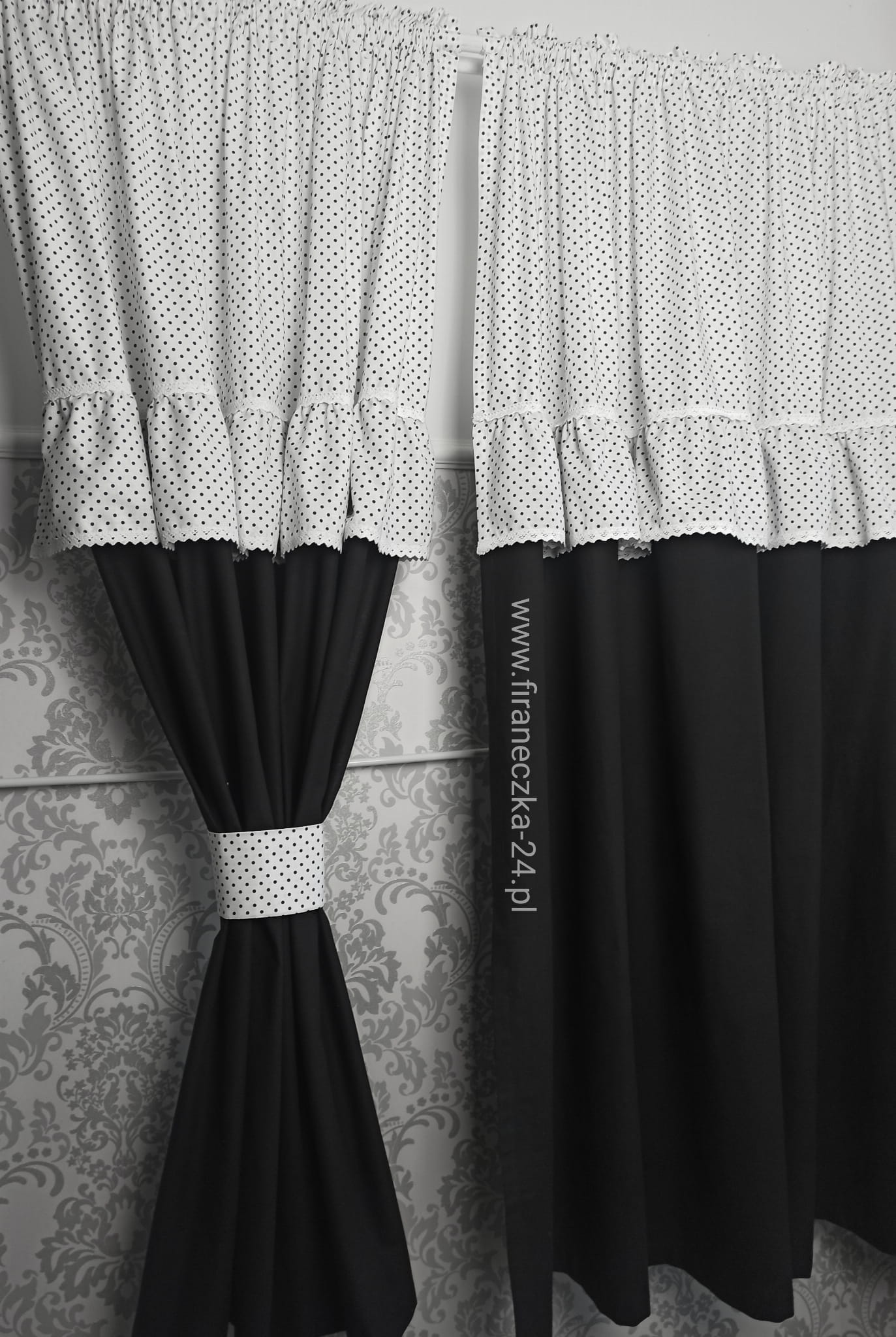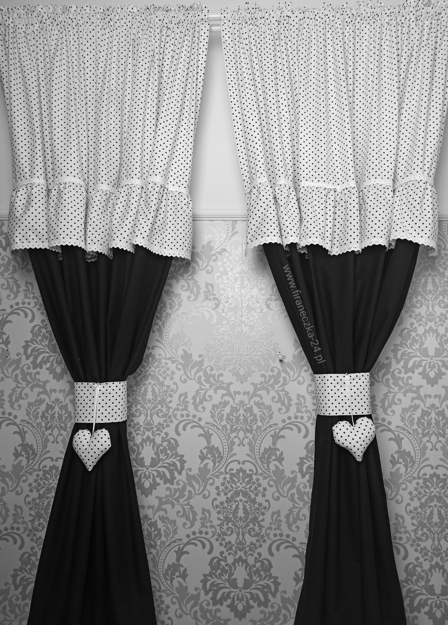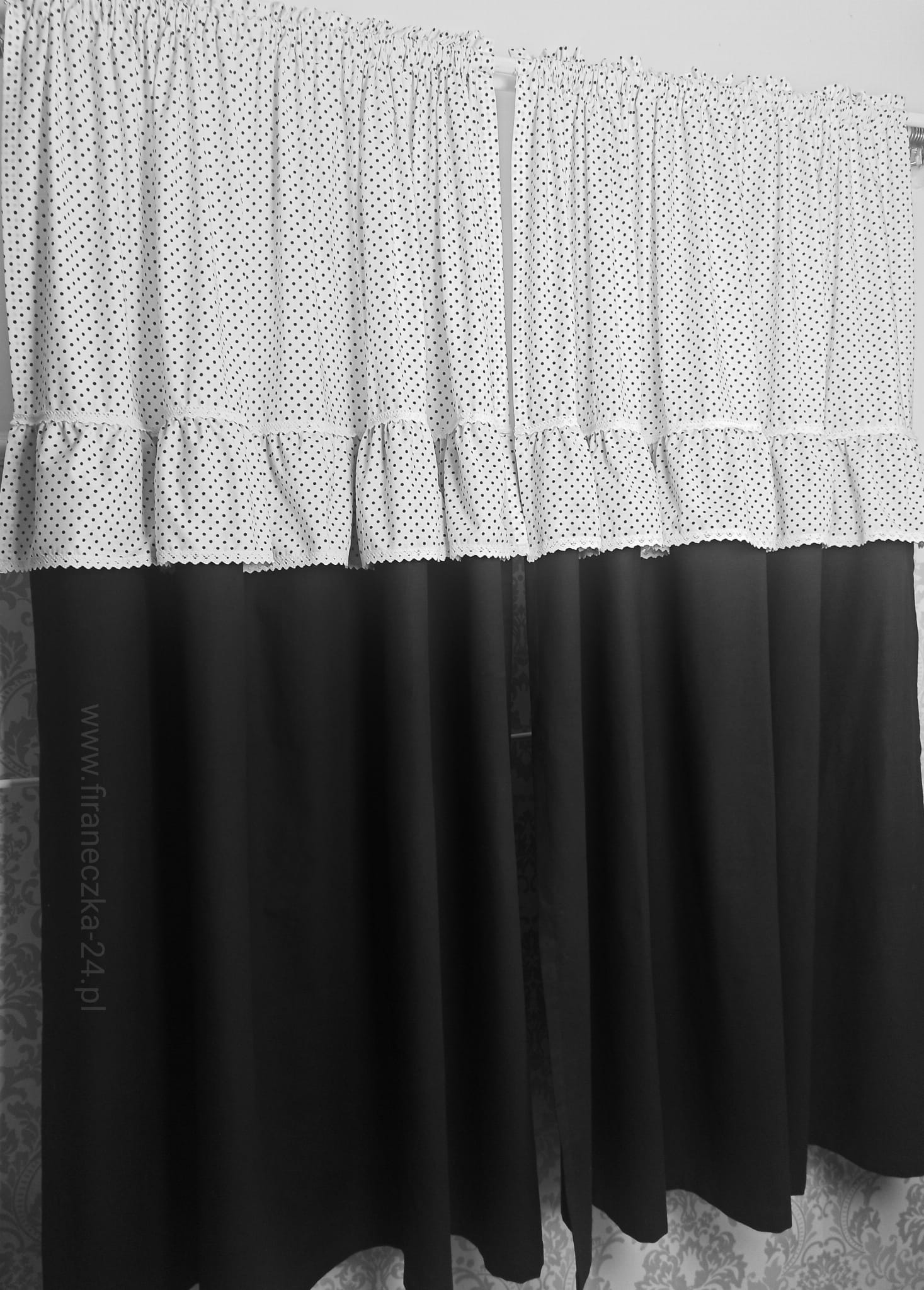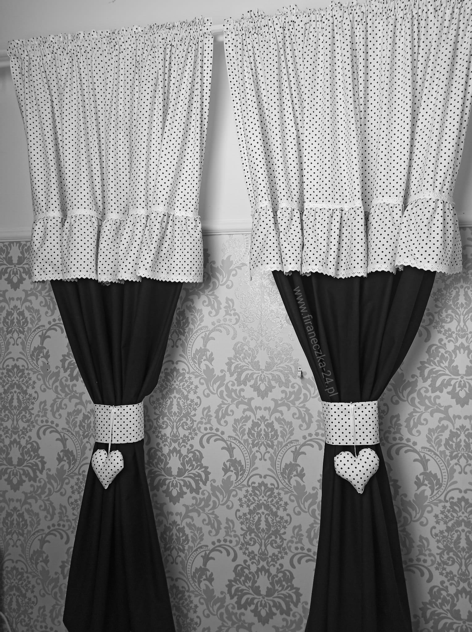 Oferuję uroczy komplet zasłon bialo-czarnych z gruszkami.