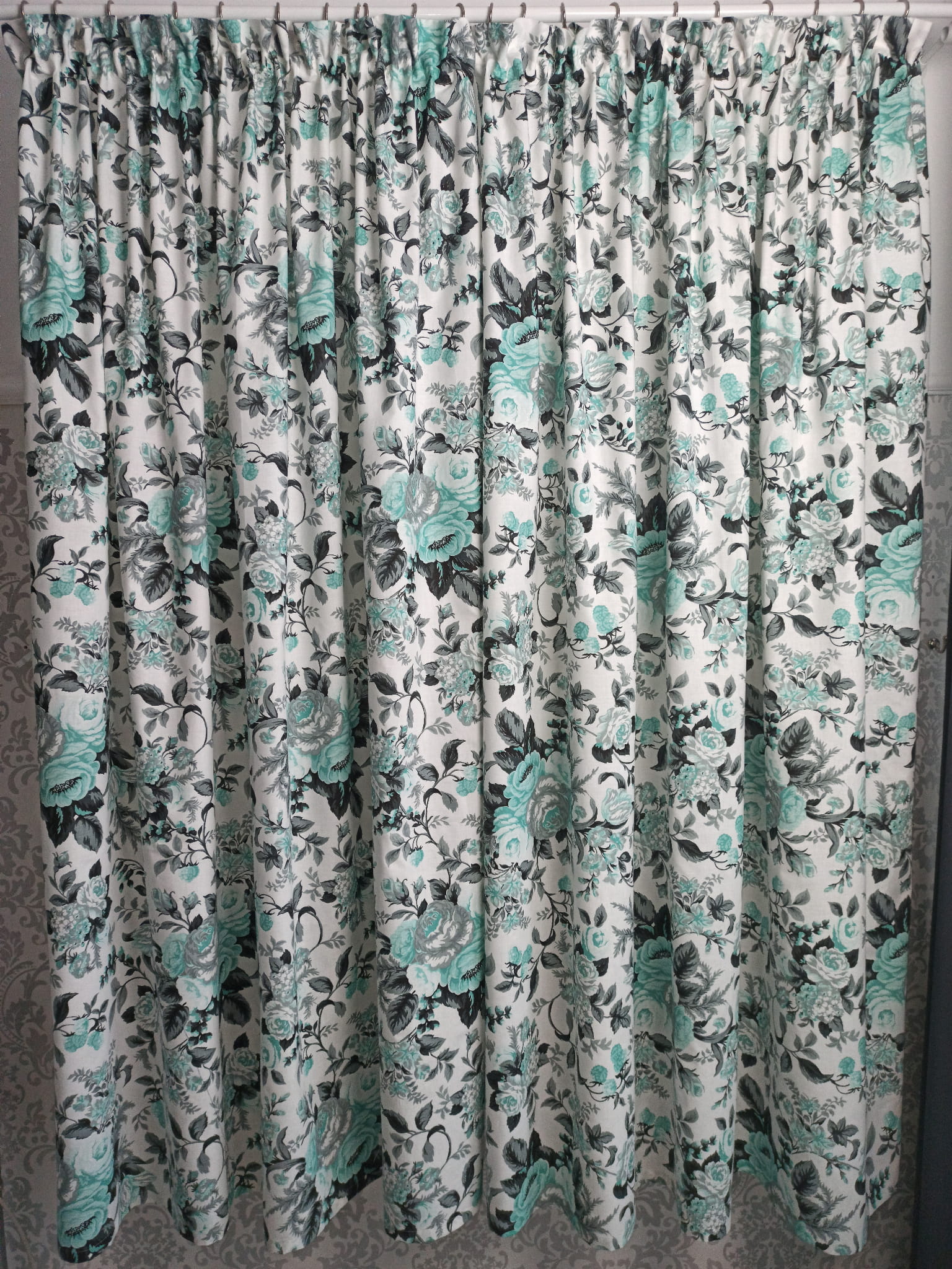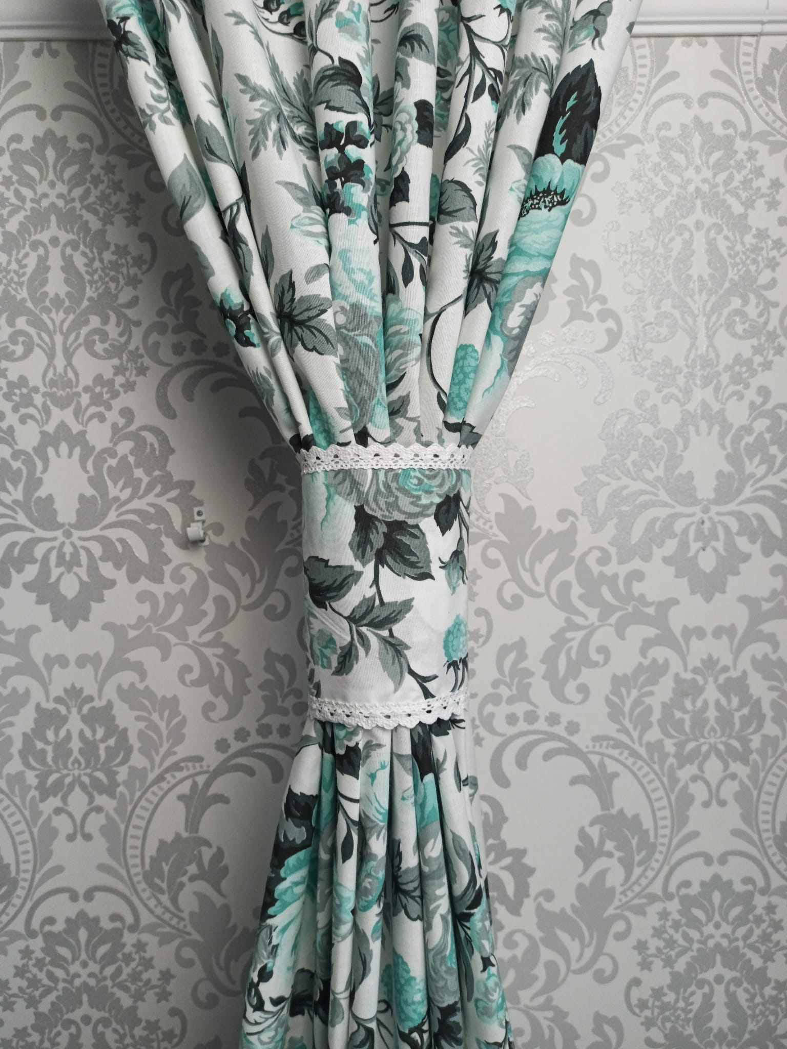 Komplet zasłon bawełnianych w piękne miętowe róże