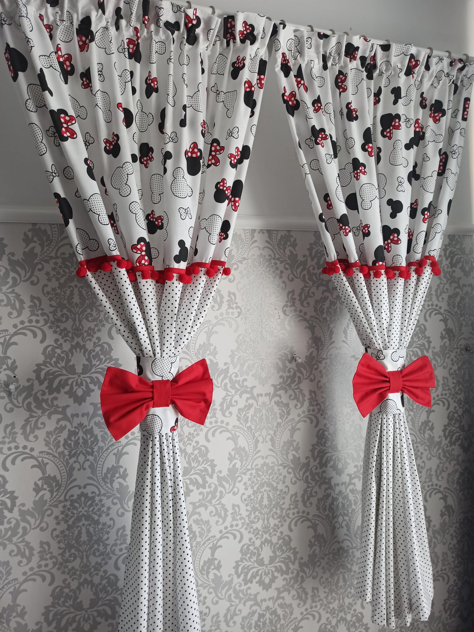 Komplet zasłon do pokoju dziecięcego myszki Minnie czerwone groszki