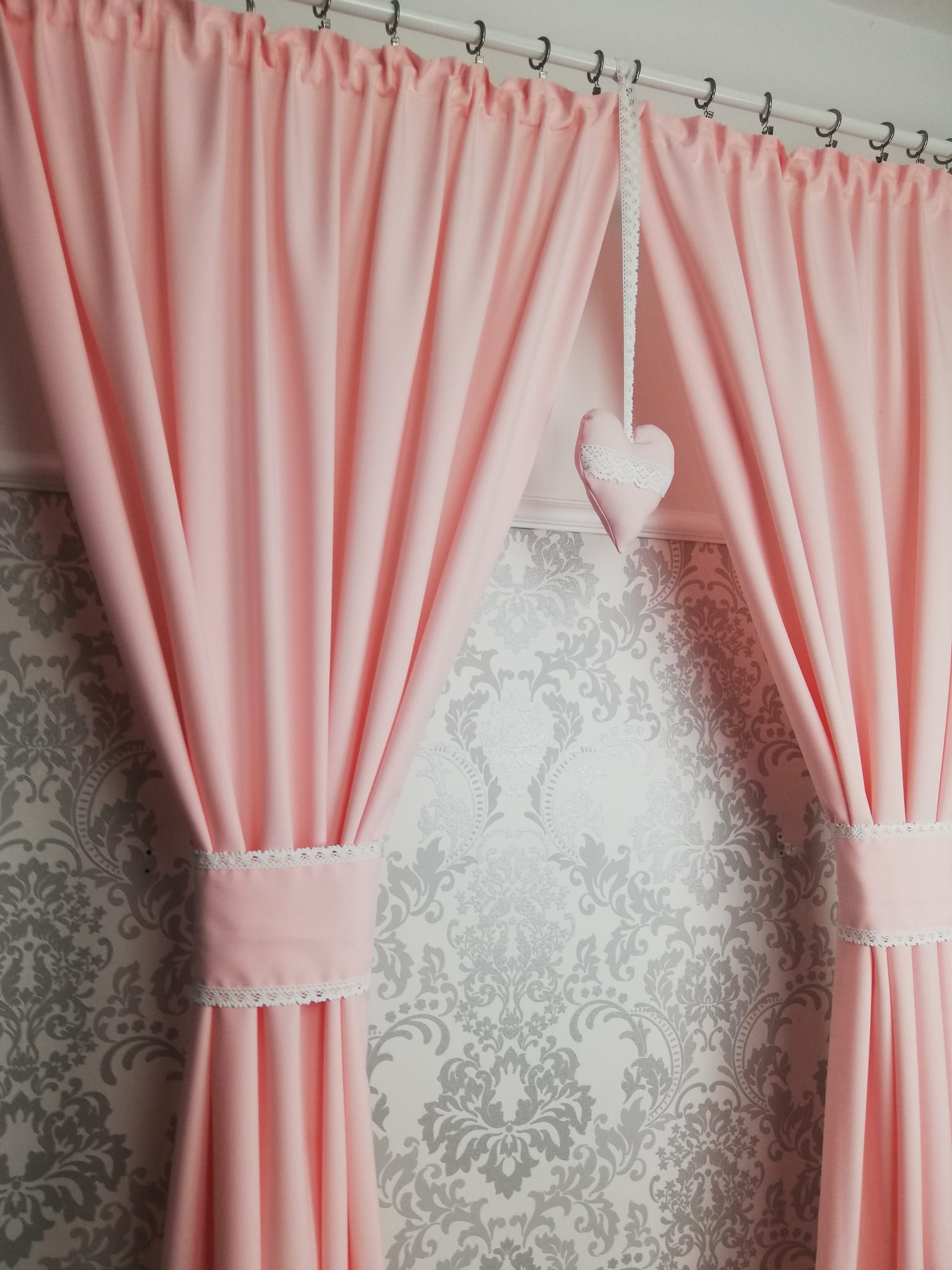 Dodatki: serduszko; pierścień z koronką podpinający zasłonki