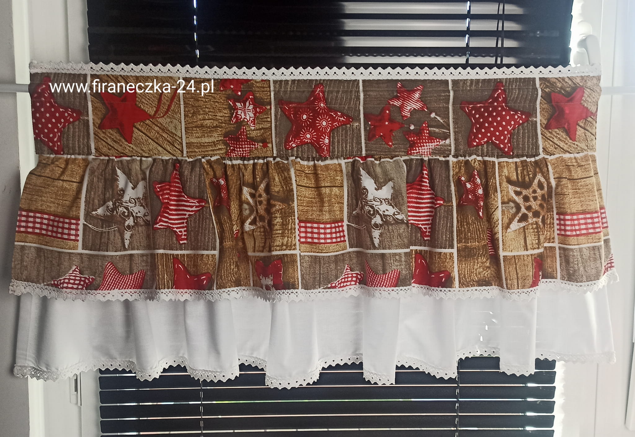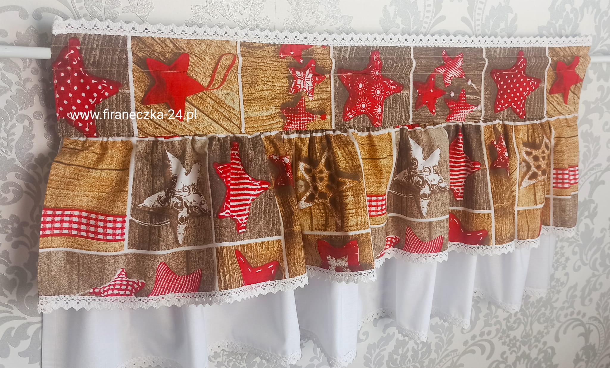 Zazdrostka firanka biała z motywem świątecznym szer. 76cm wys. 40 cm