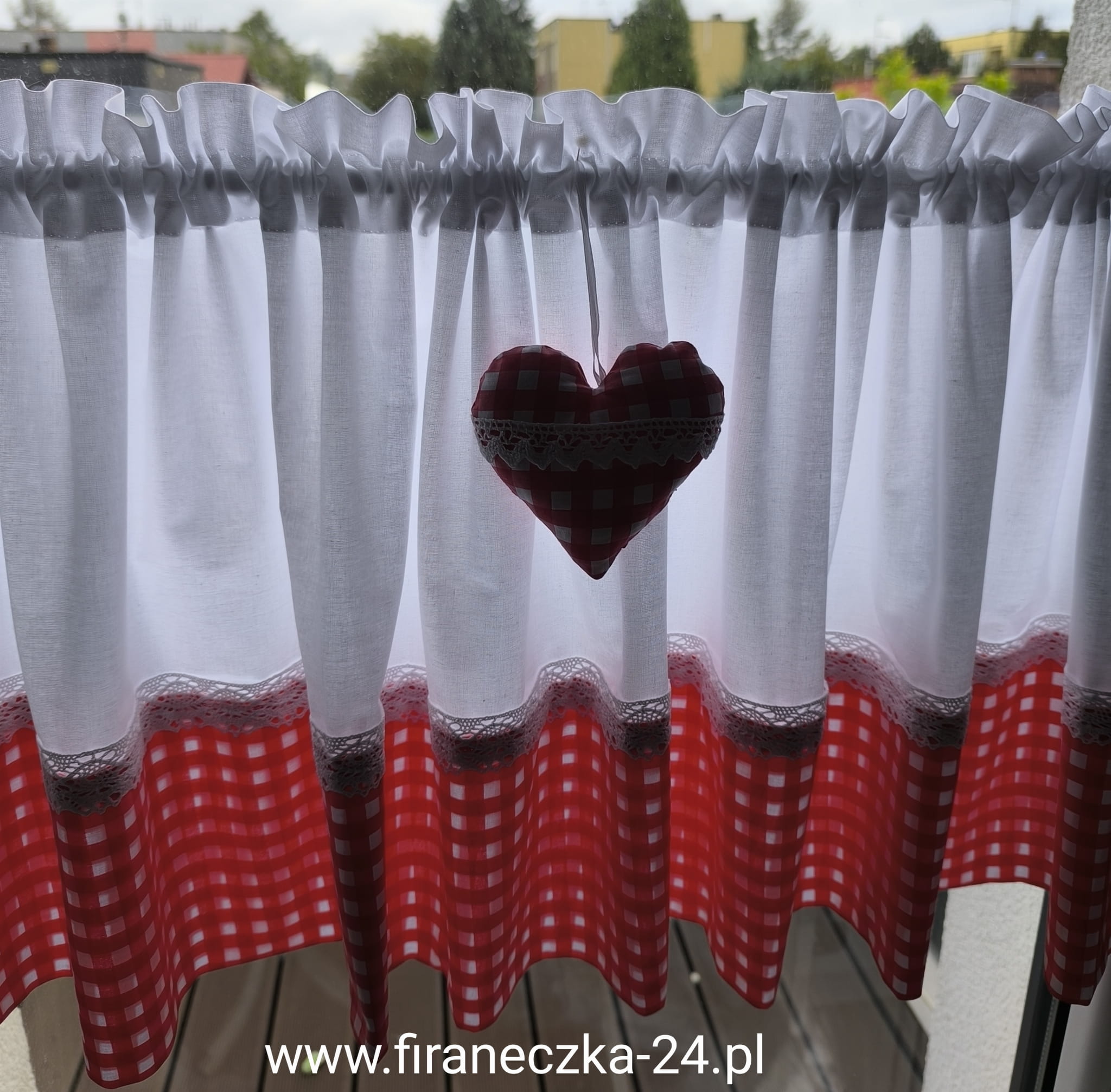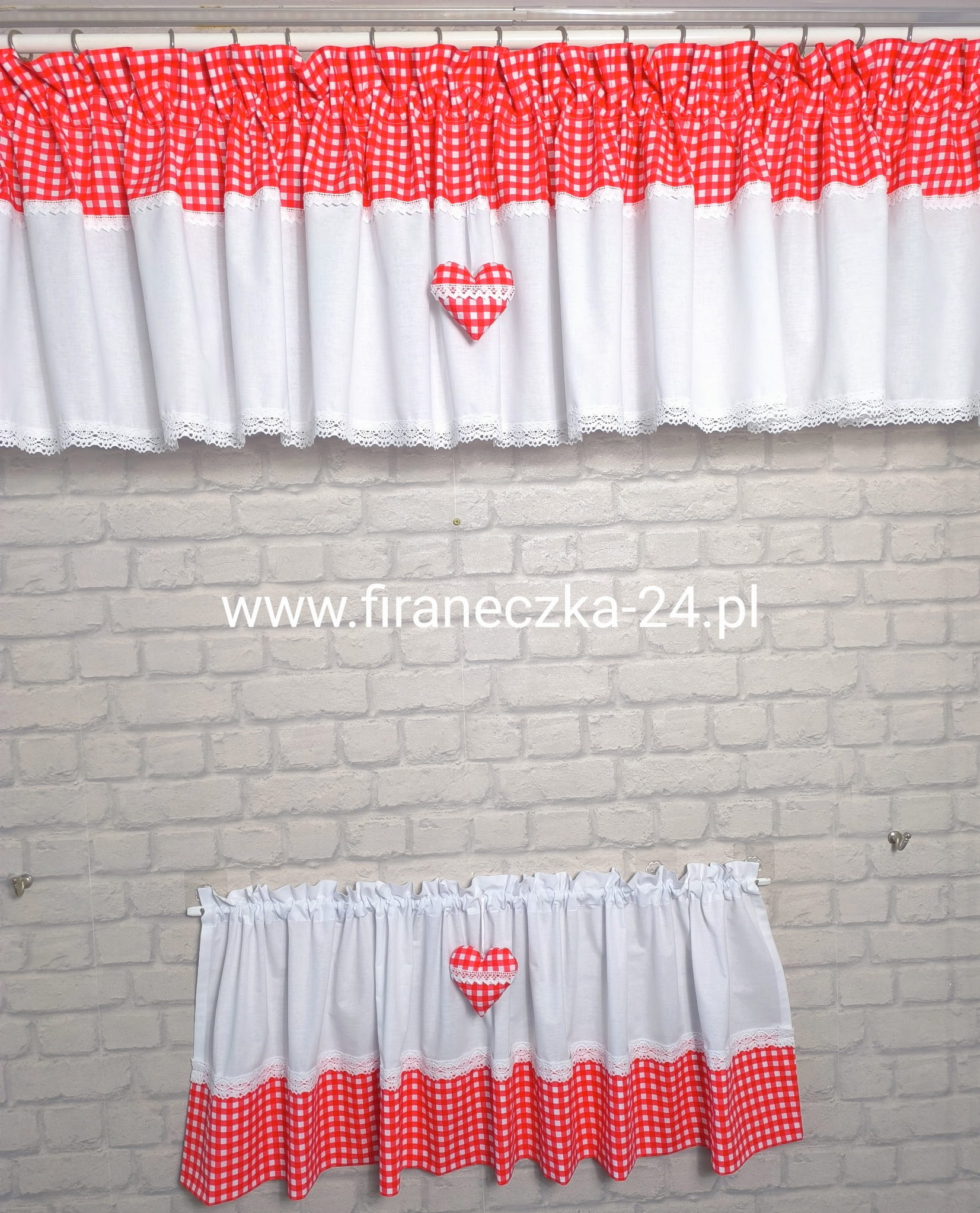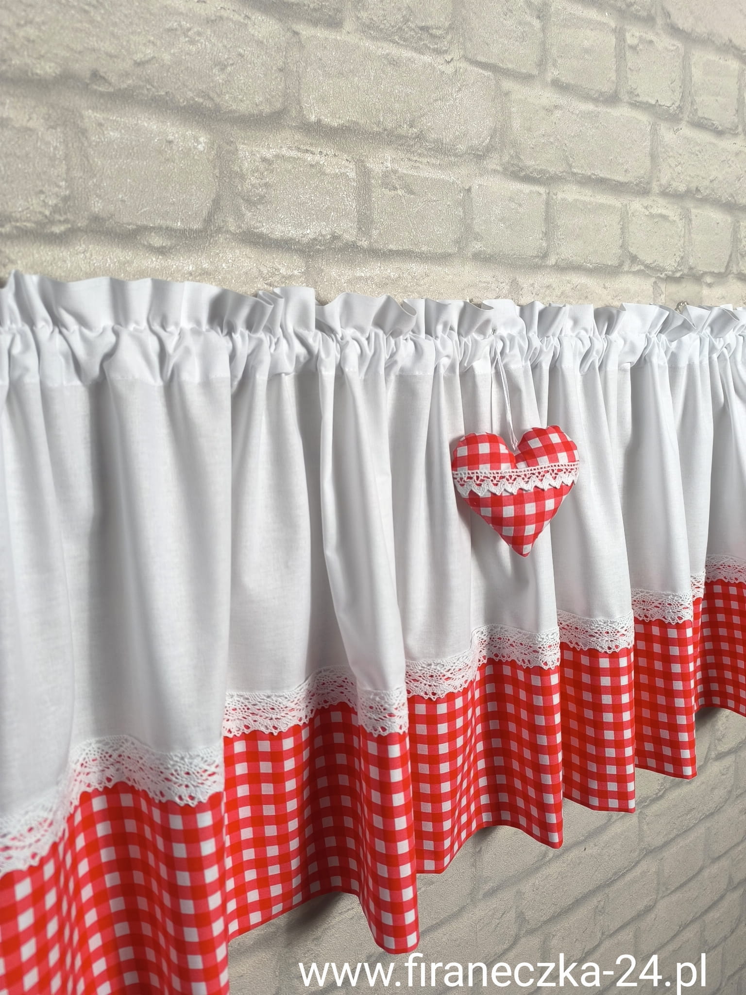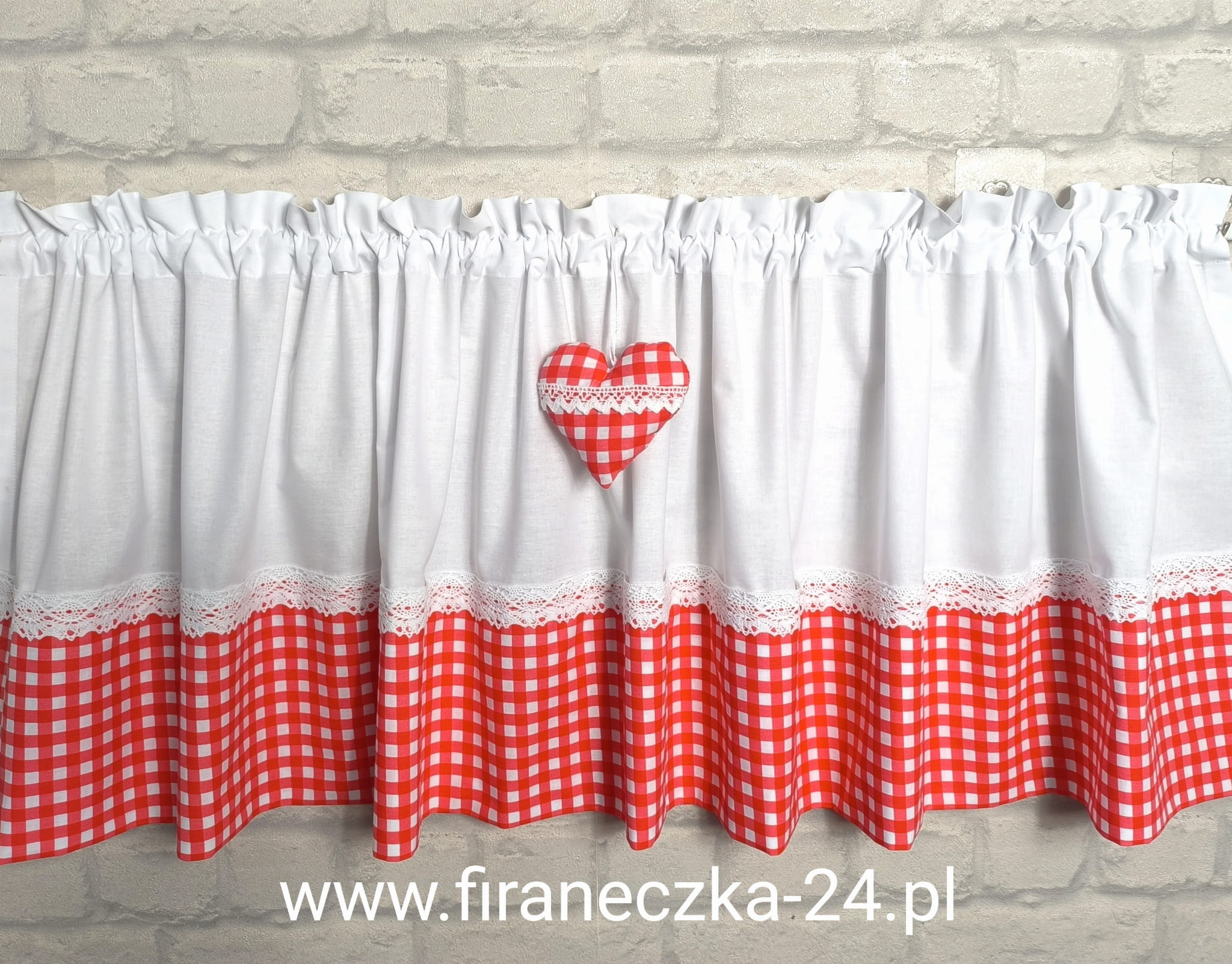 Zazdrostka lambrekin firanka biała czerwona kratka koronka bawełna