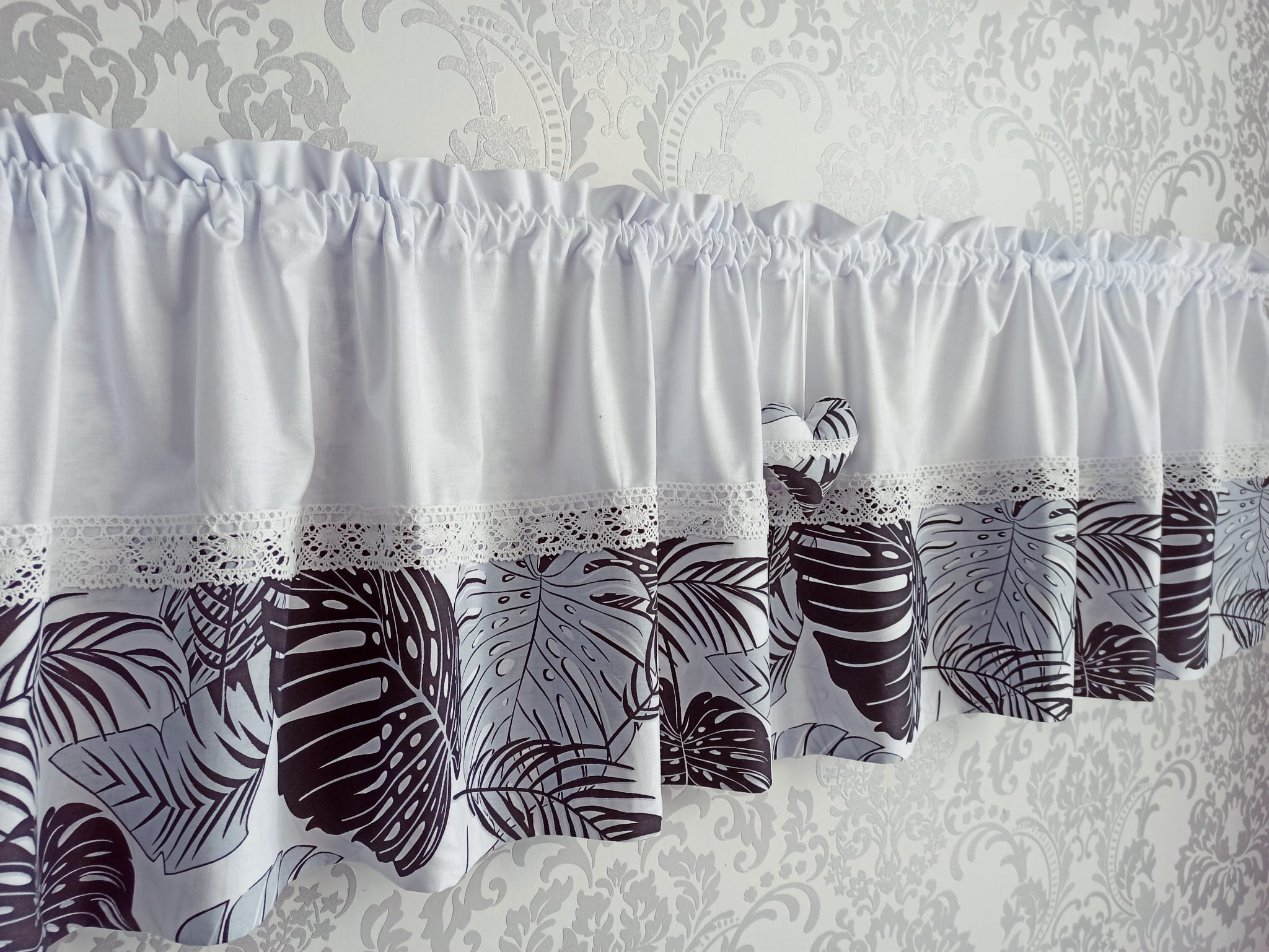 Zazdrostka lambrekin firanka liście monstery koronka bawełna