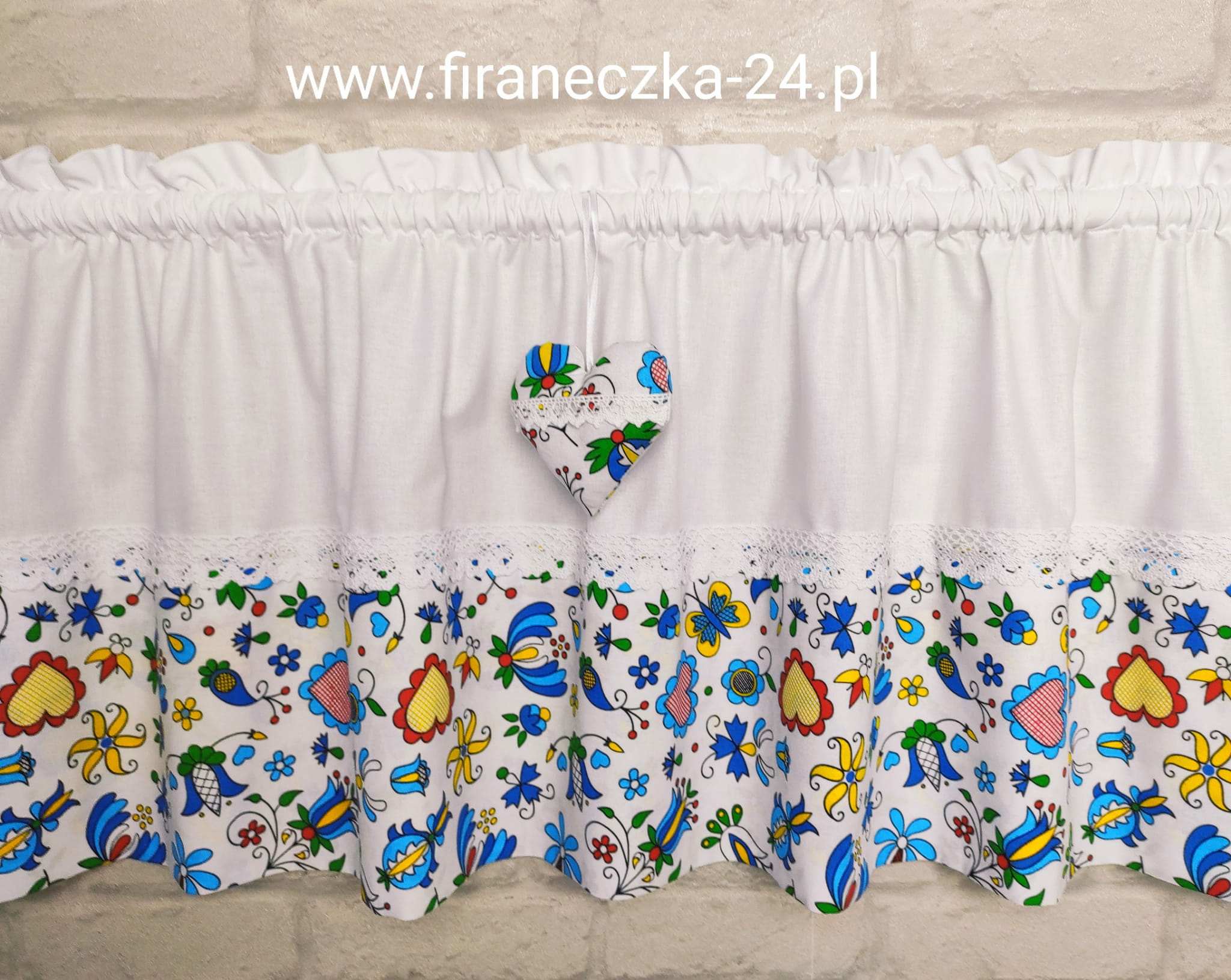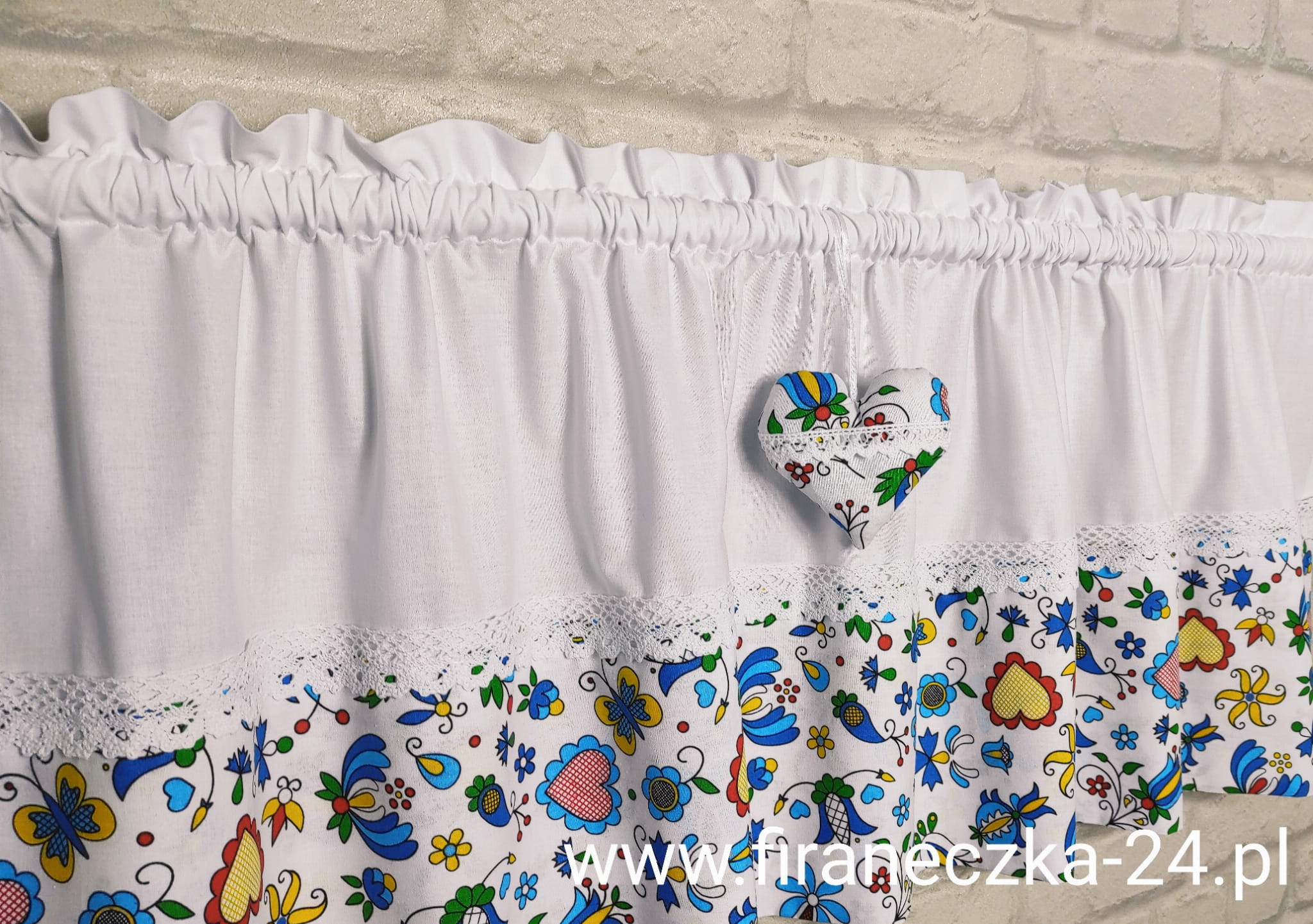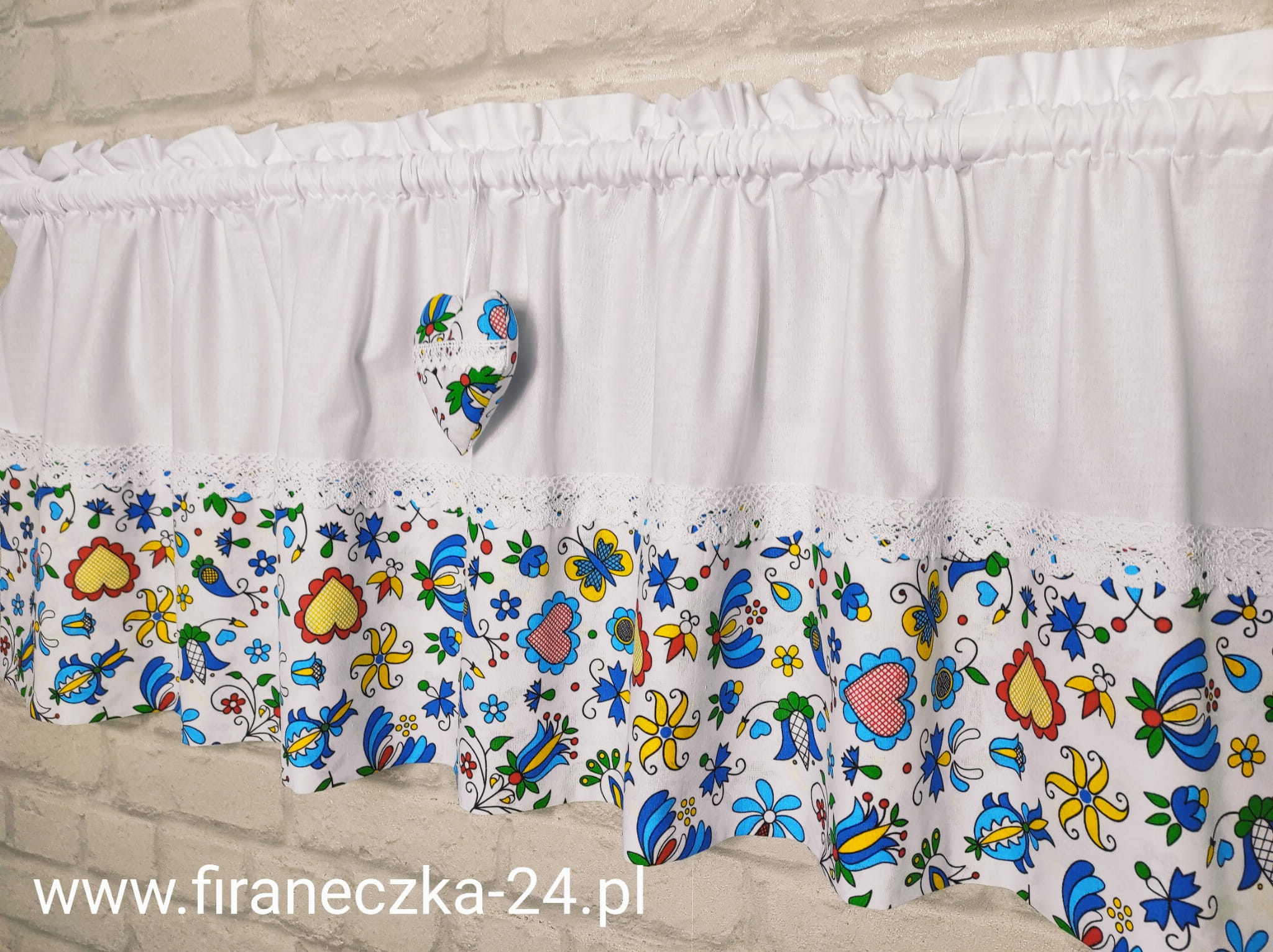 Zazdrostka lambrekin firanka wzór kaszubski koronka bawełna 130/40 na patyczek 70-100cm