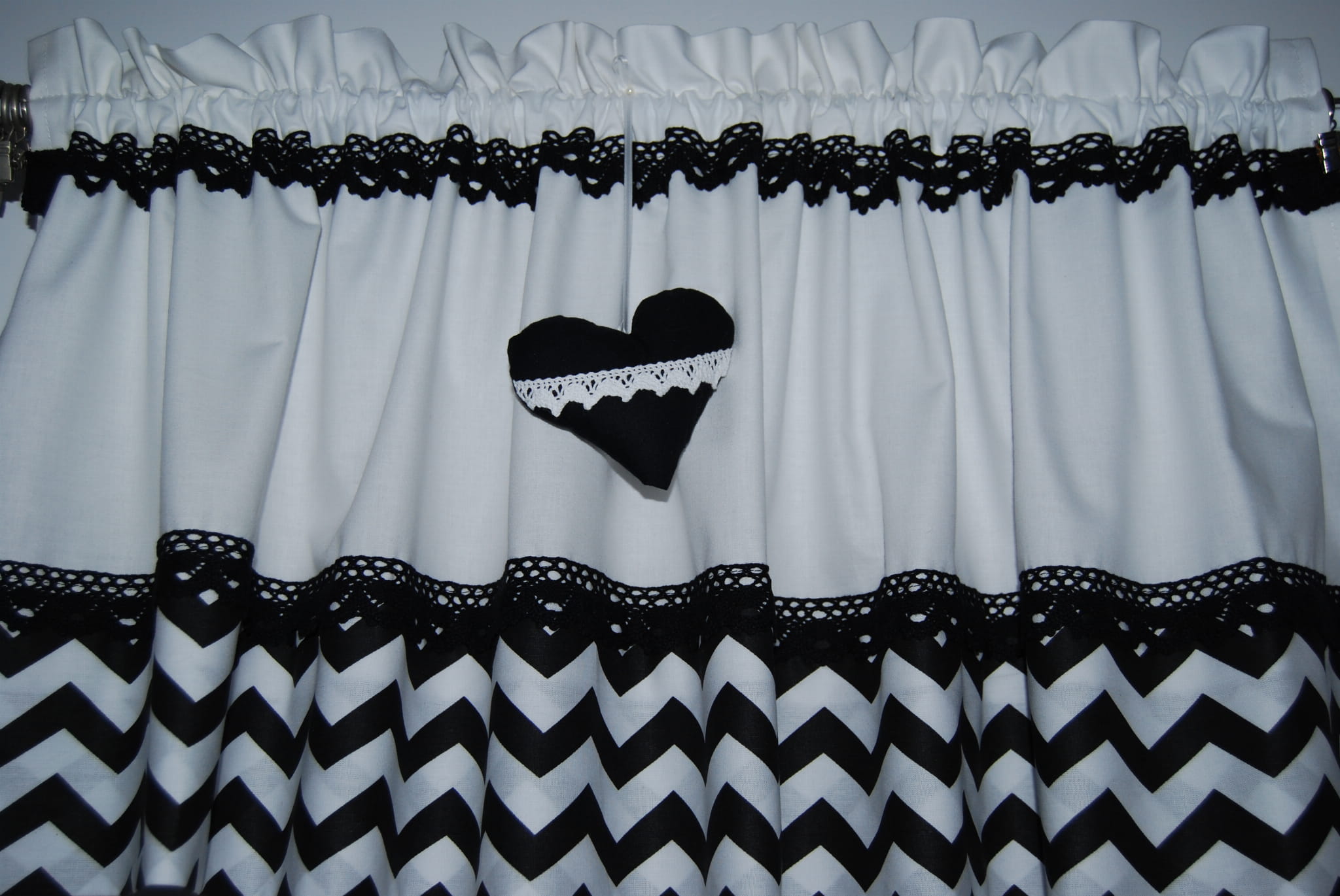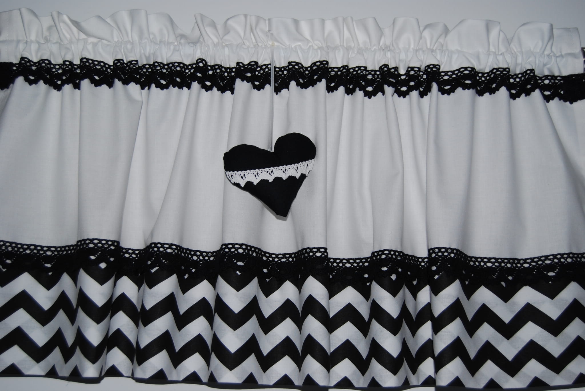 Zazdrostka lambrekin firanka zygzak czarny na białym koronka bawełna GOTOWY 80/30