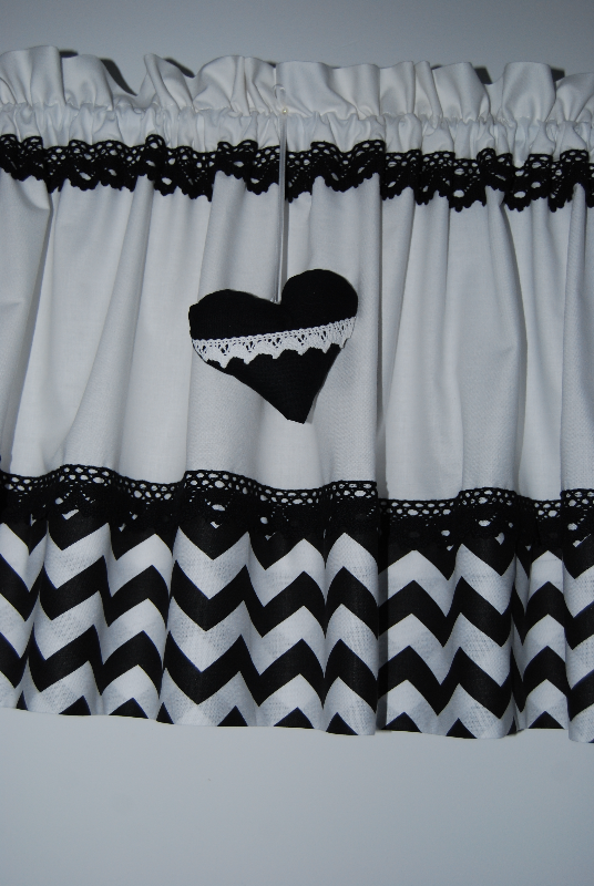 Zazdrostka lambrekin firanka zygzak czarny na białym koronka bawełna GOTOWY 80/40