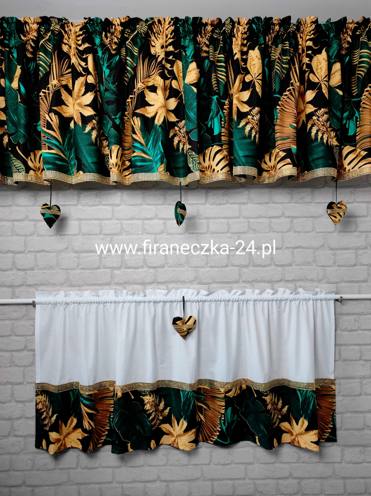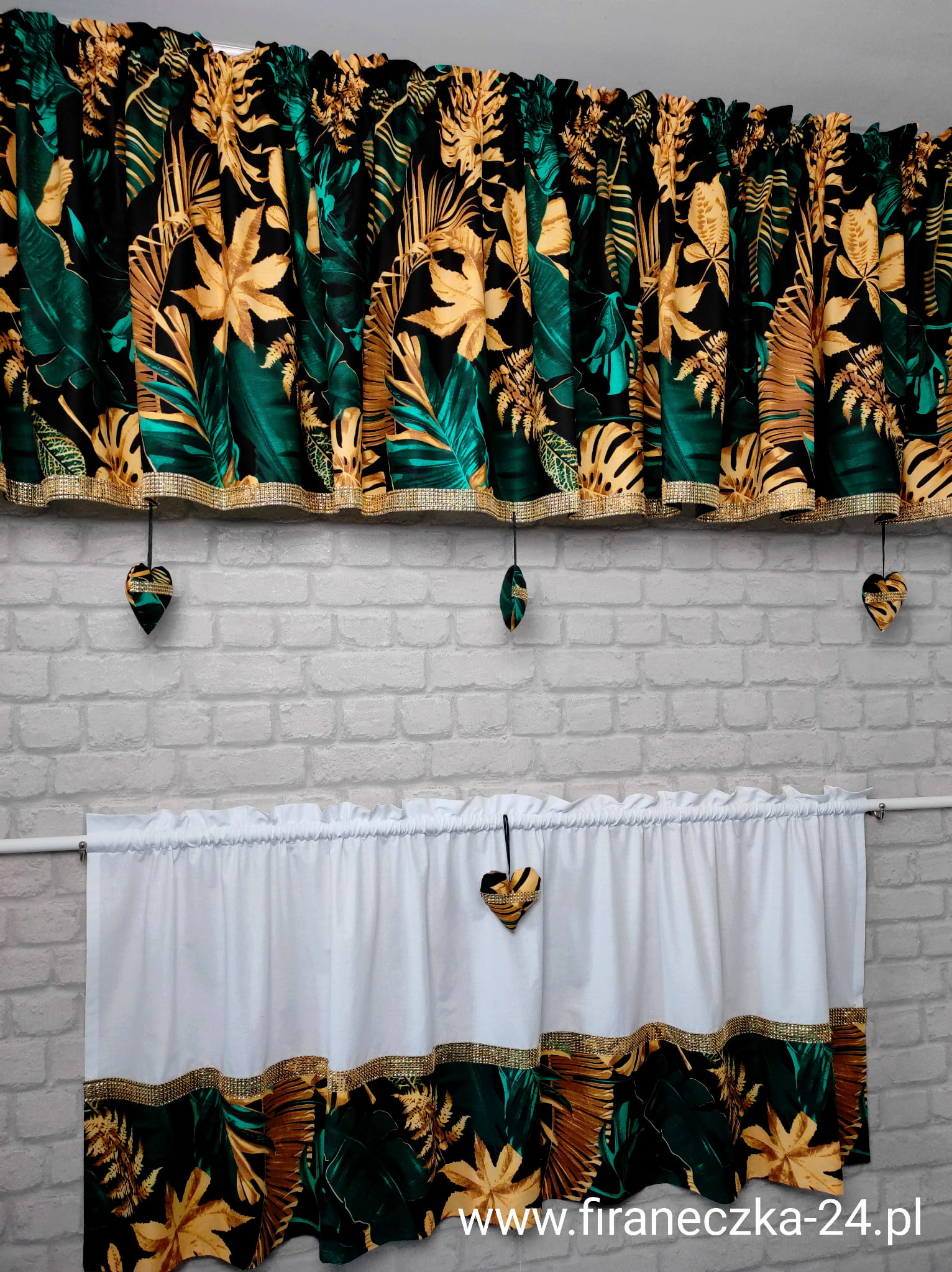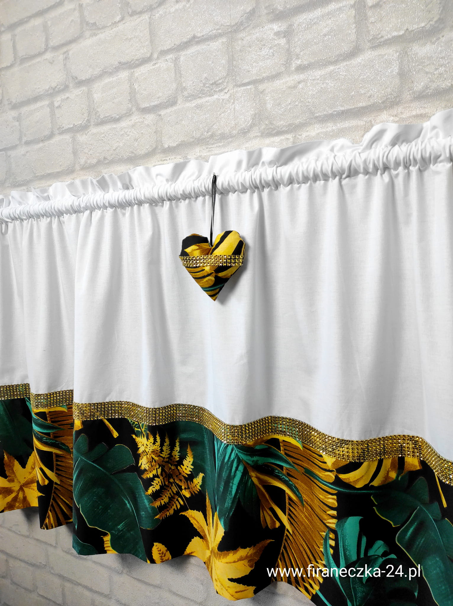 Zazdrostka nowoczesna glamour firanka liście złoto diamenty bawełna