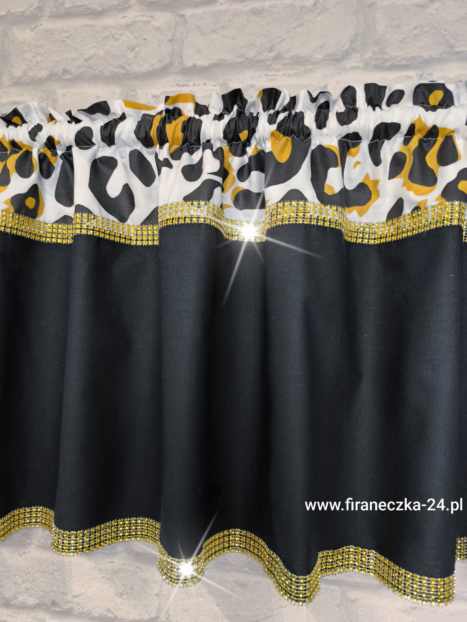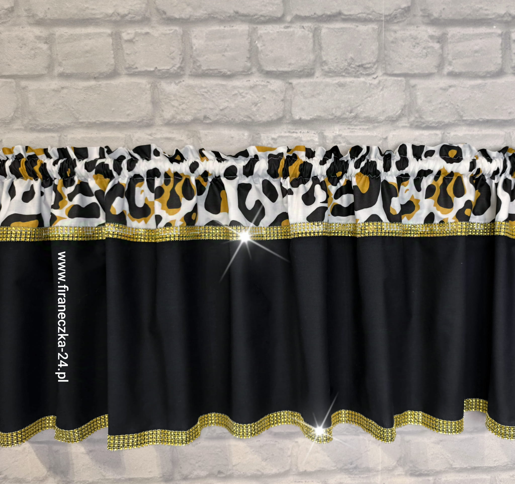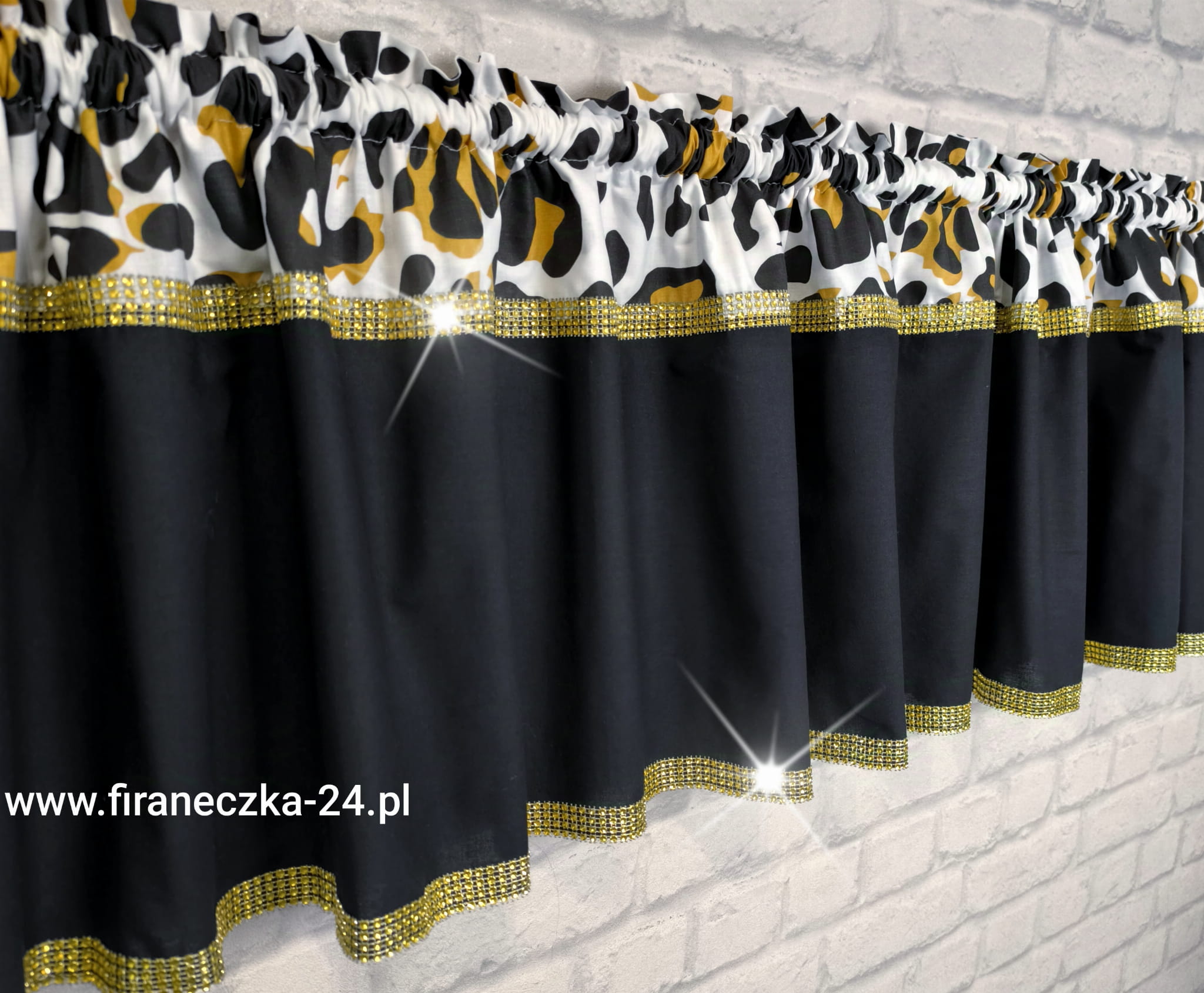 Zazdrostka nowoczesna glamour firanka panterka złoto diamenty bawełna