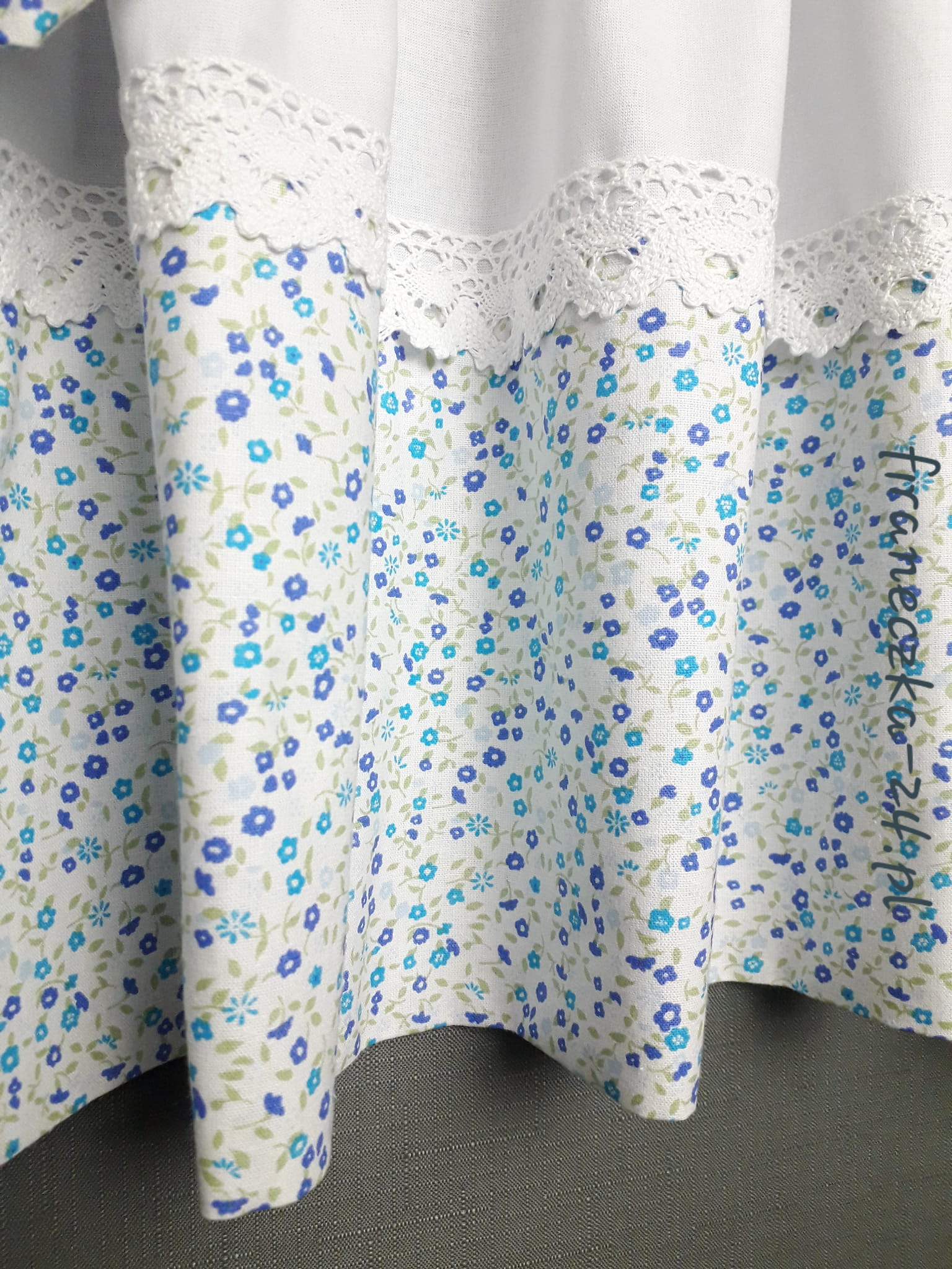 Oferuję piękną zazdrostkę w kolorach bieli i błękitów, ręcznie wykonaną, oryginalną i wyjątkową.